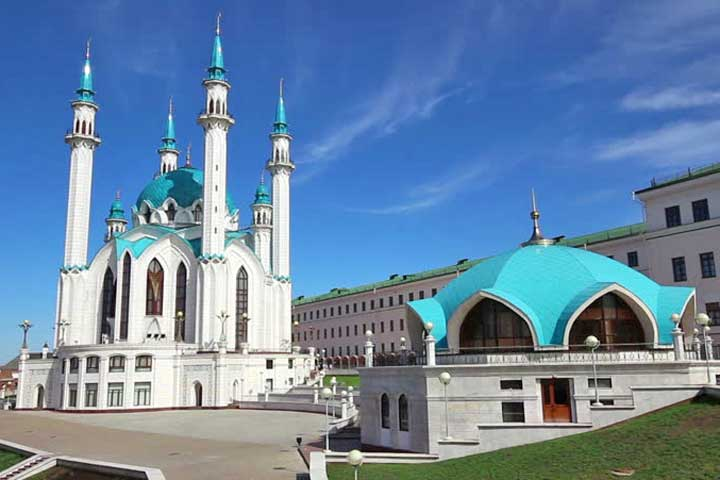 Nhà thờ hồi giáo Nurulla: Nhà thờ có hai màu sắc chủ đạo là màu trắng và xanh da trời. Màu xanh được sử dụng cho phần ngói và màu trắng cho những phần còn lại. Chính vì vậy, công trình mang trên mình vẻ đẹp trang nhã và hài hòa đến lạ thường.