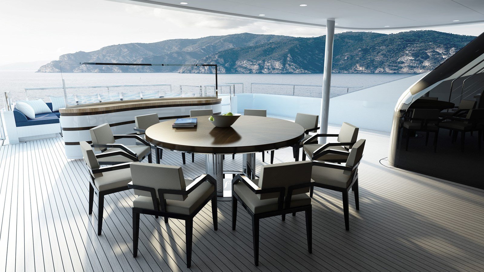 Các boong bên ngoài cũng có nhiều khu vực ăn uống và thư giãn. Soaring còn có những tiện nghi xa xỉ như bể sục, quầy bar, khu tắm nắng trên boong, khu vực thư giãn ngoài trời.